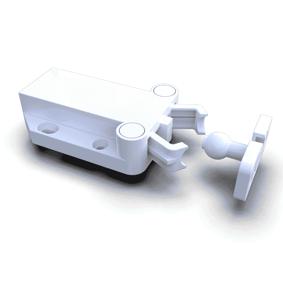 關門時用手指輕輕推壓門,夾臂即可牢固扣住接頭,將門固定。
